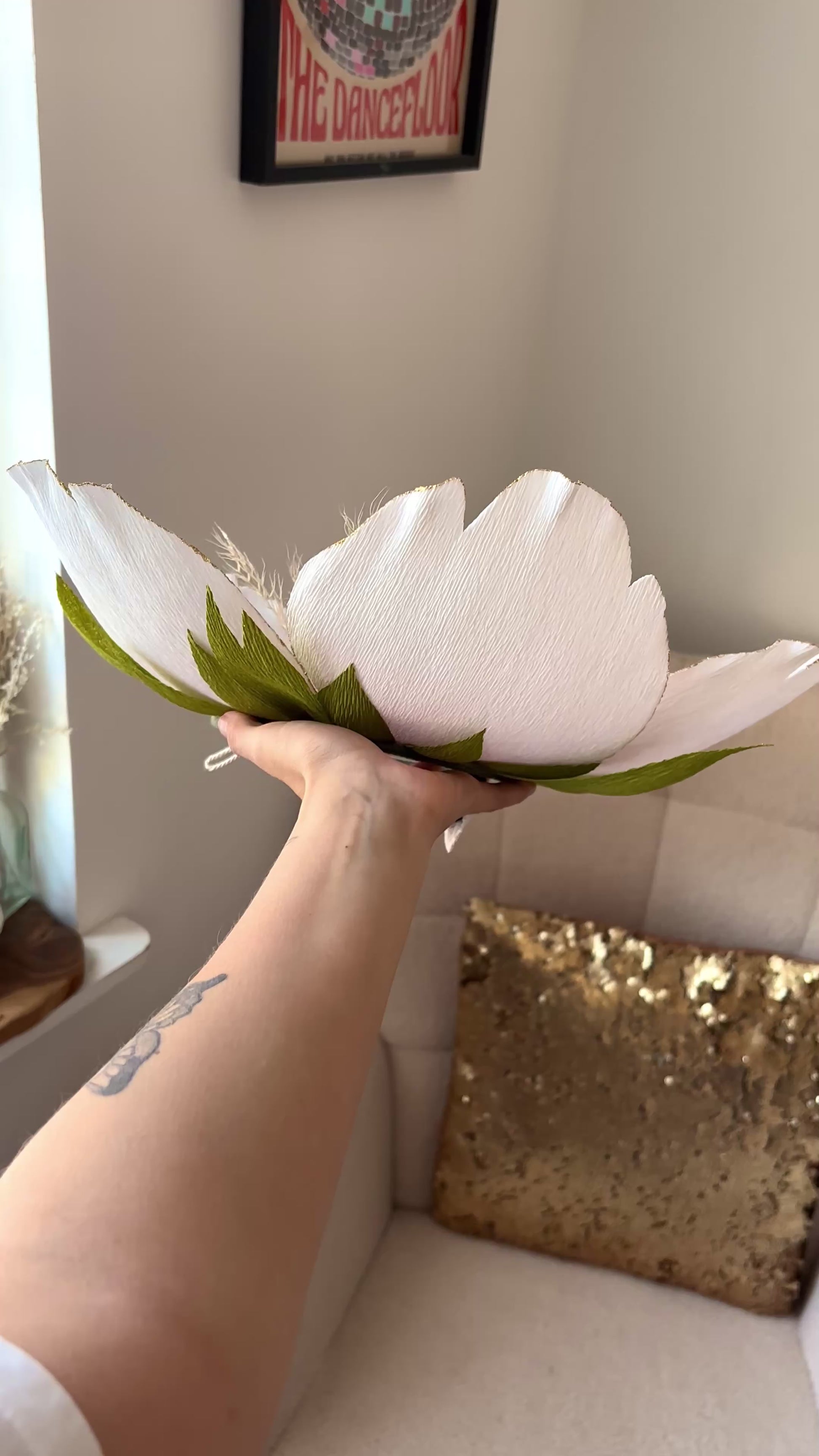 Laissez entrer la délicatesse du printemps chez vous avec cette fleur de cerisier réalisée entièrement à la main, en papier crépon 🌸