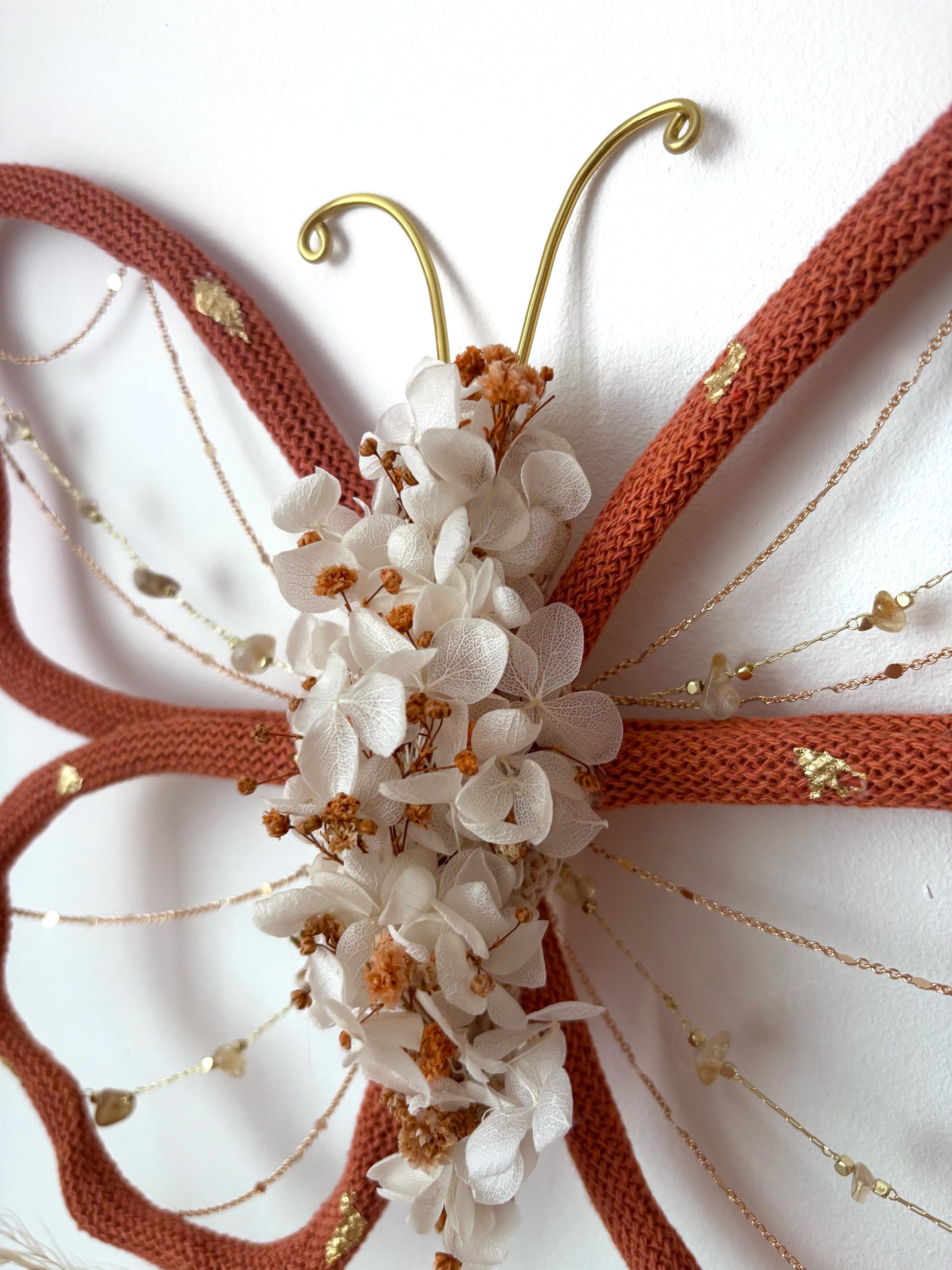 Symbole de transformation & de liberté, le papillon Maïra s’invite naturellement dans un intérieur bohème, doux ou contemporain. À suspendre ou à poser, cette création devient un véritable objet décoratif, précieux & chargé d’émotion 💛