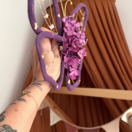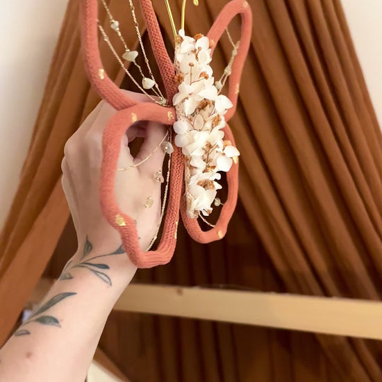 Chaque Papillon Maïra est imaginé & façonné avec soin dans mon atelier ✨ Les fleurs séchées, éclats d’or, chaînettes & pierres sont posés manuellement, rendant chaque pièce absolument unique. En choisissant cette création, vous soutenez l’artisanat & le fait main 💛
