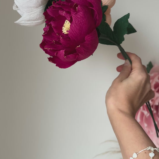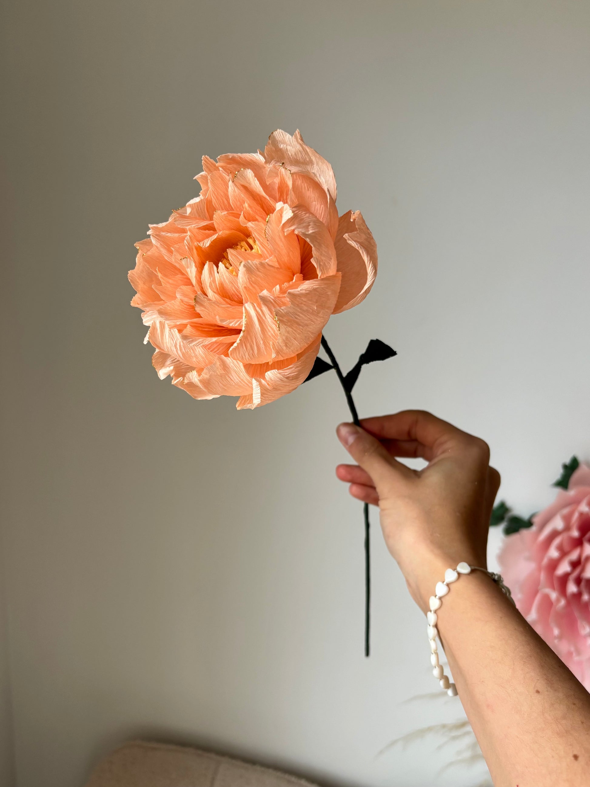 Laissez entrer l’élégance dans votre intérieur avec cette pivoine d’exception, entièrement façonnée à la main dans mon atelier ✨ Chaque pétale est découpé, sculpté & assemblé avec minutie pour offrir un rendu incroyablement réaliste, tout en conservant la douceur artistique propre au papier crépon haut de gamme 🌹