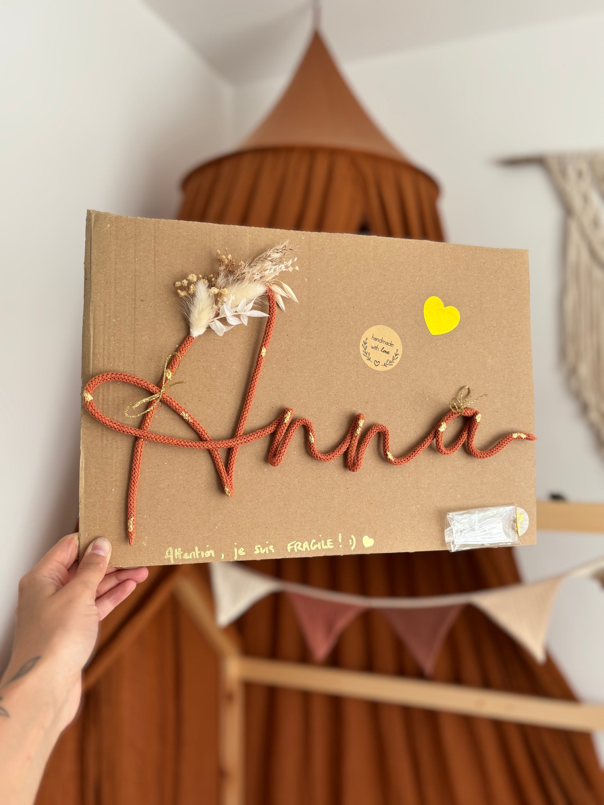 Un mot doux façonné à la main pour sublimer votre intérieur ✨ Que ce soit pour offrir un cadeau de naissance unique, décorer une pièce de vie, personnaliser un évènement ou simplement ajouter une touche bohème chez vous, ce prénom ou mot en macramé se prête à toutes les occasions 💖