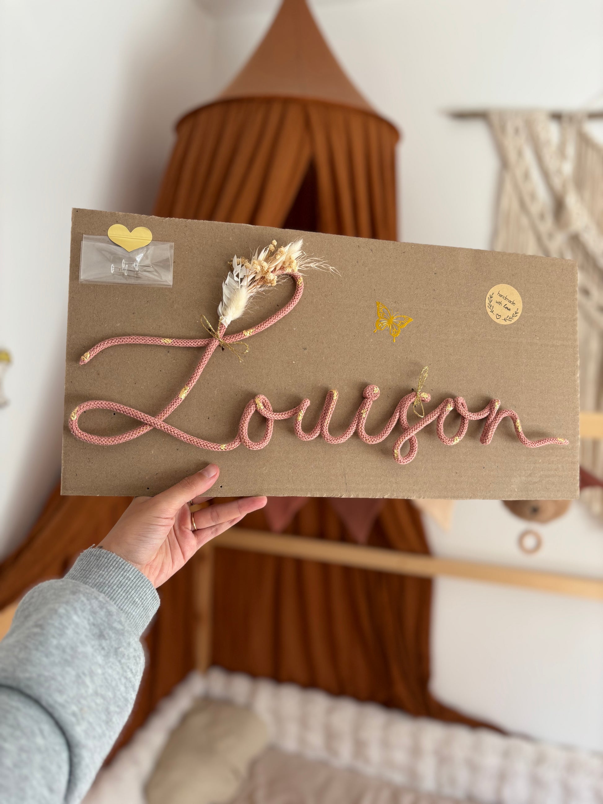 💫 Choisissez le prénom, la couleur & les détails (cœur, fleurs séchées…) pour une création 100% personnalisée.
