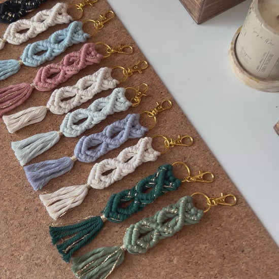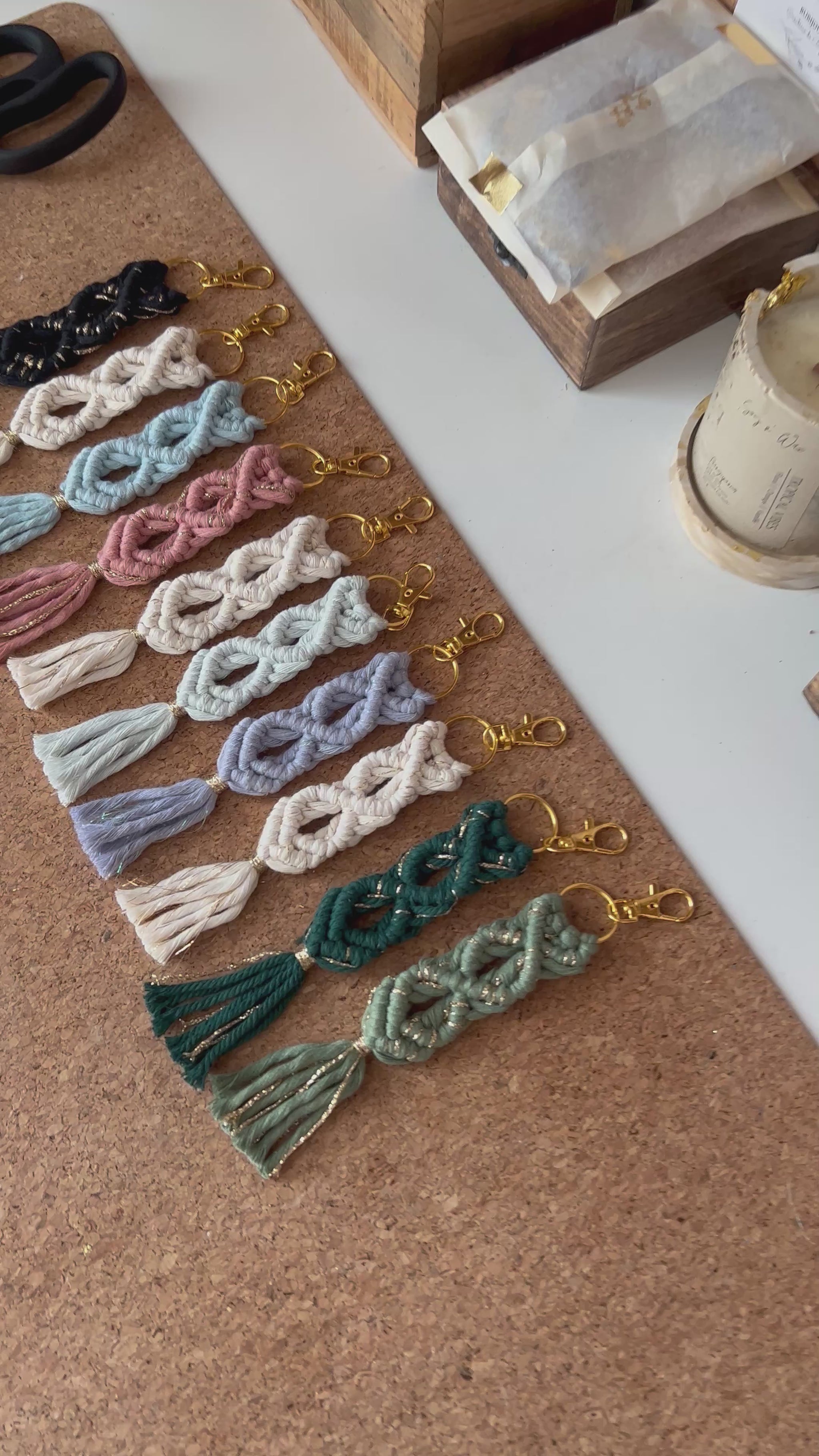Élégant & bohème, ce porte-clé en macramé entièrement tressé à la main séduit par ses deux nœuds entrelacés, symboles de lien & d’harmonie 💫